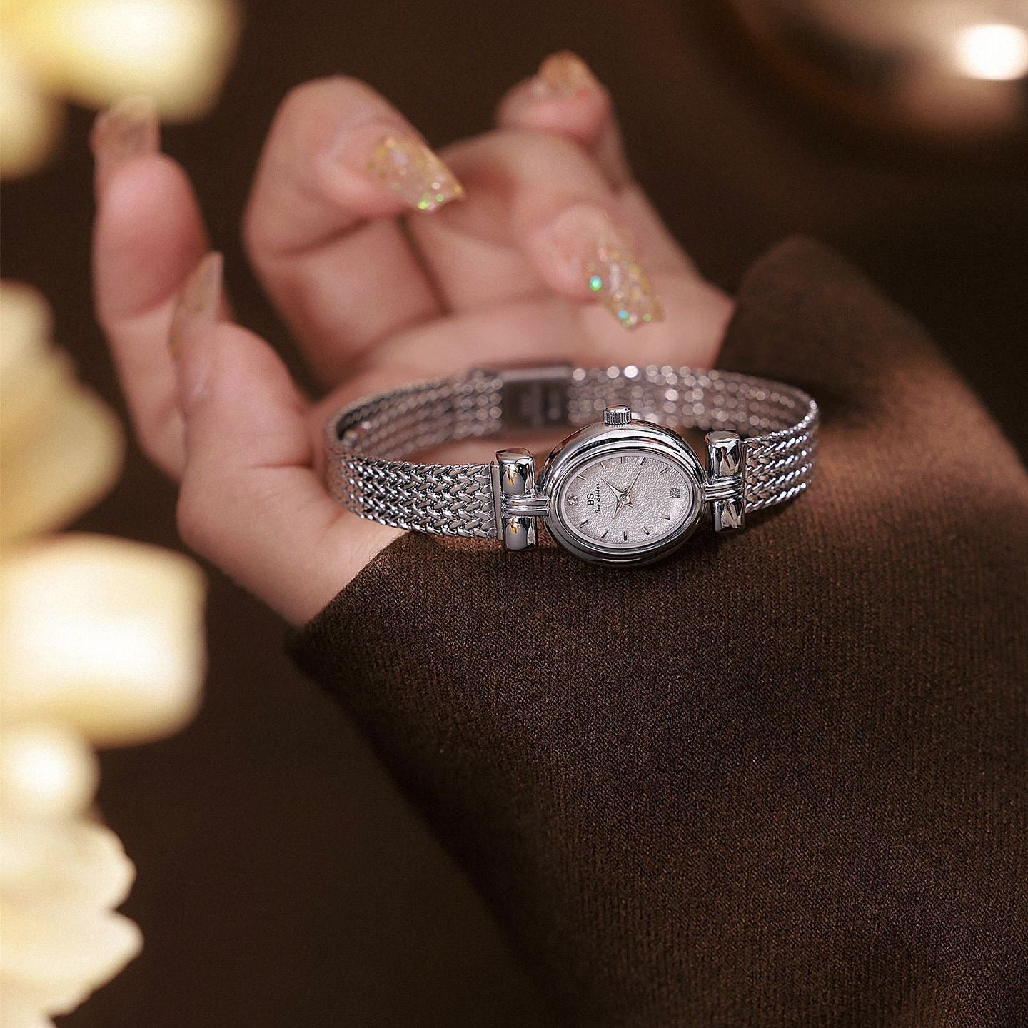About this product: This stylish small-dial watch, paired with a smooth stainless steel bracelet, embodies minimalist beauty. Its minimalist design and elegant finish make it a timeless accessory that easily complements any attire.